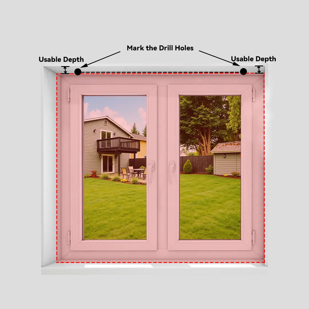 Make sure the drill holes are aligned and parallel to the window edge for a clean, even look. Position the holes within your measured height range to ensure the shade fully covers the window after installation.