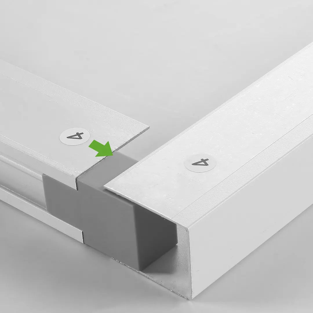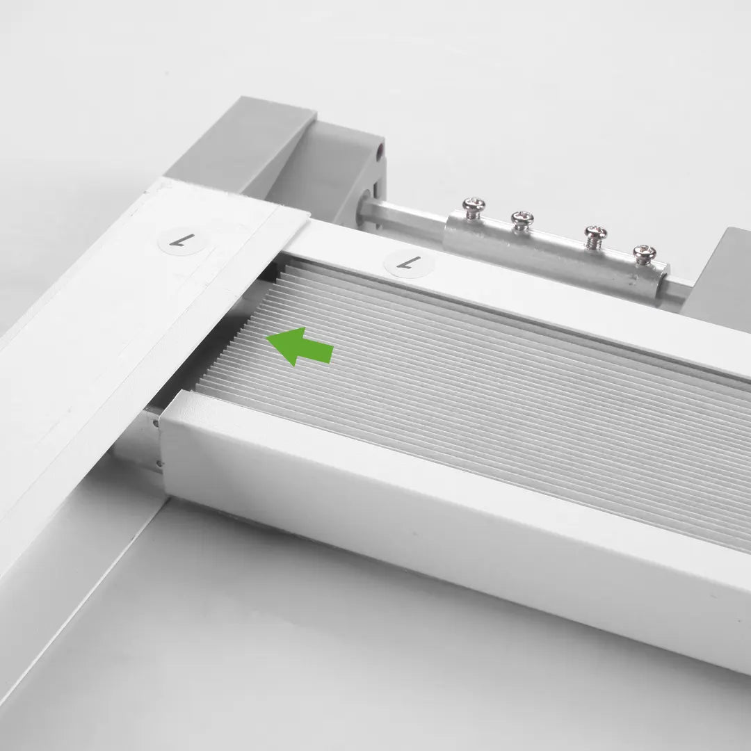 Slide the two side tracks into the slots of the bottom aluminum frame.
