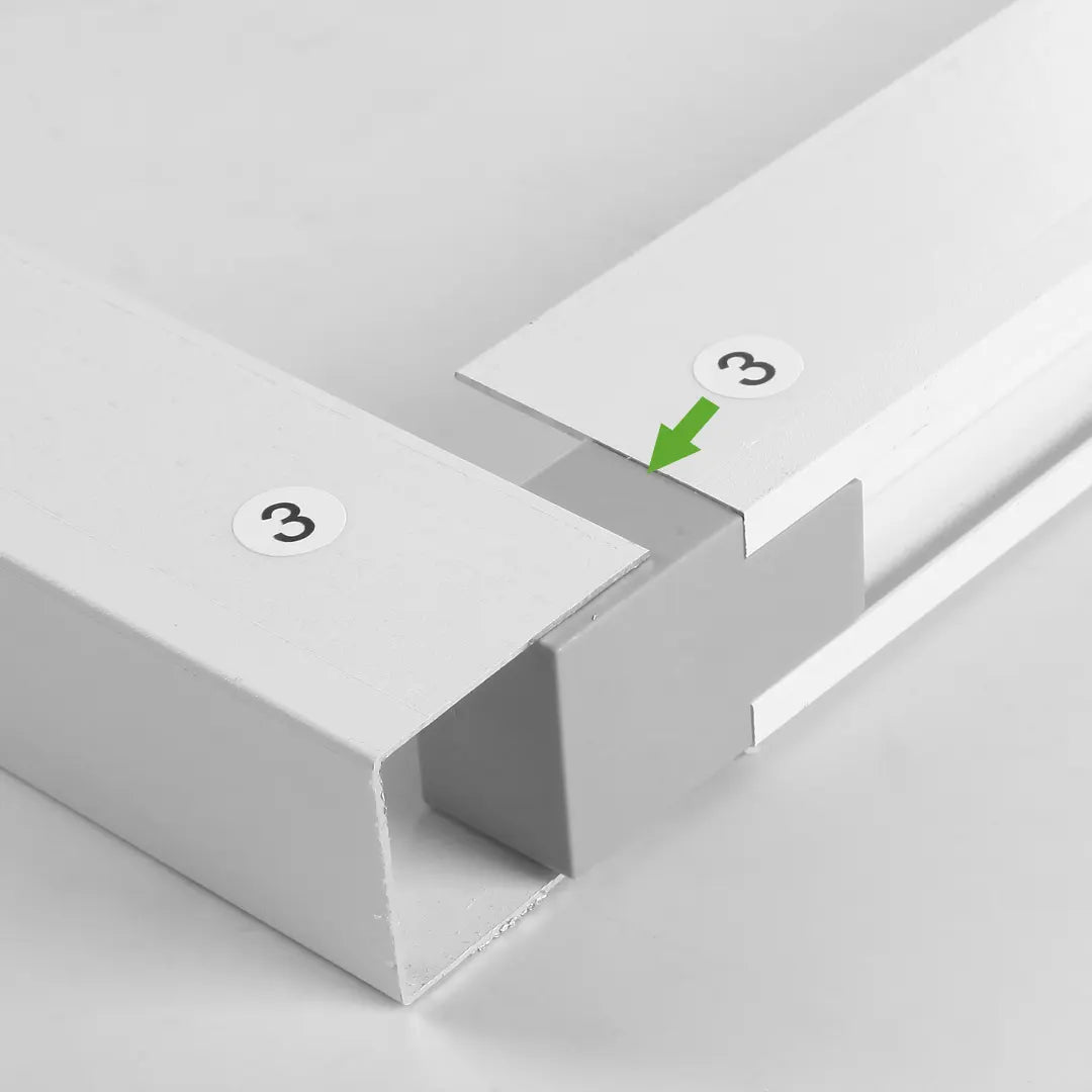 Push the headrail to the top and slot it into the top ends of both side tracks.