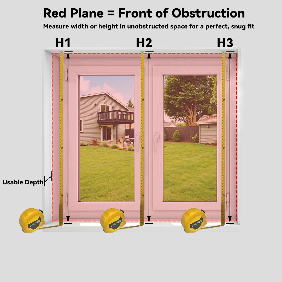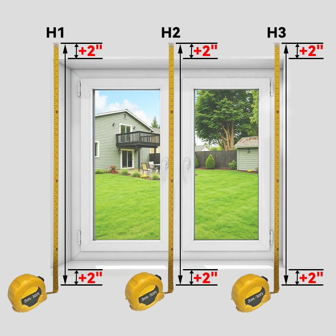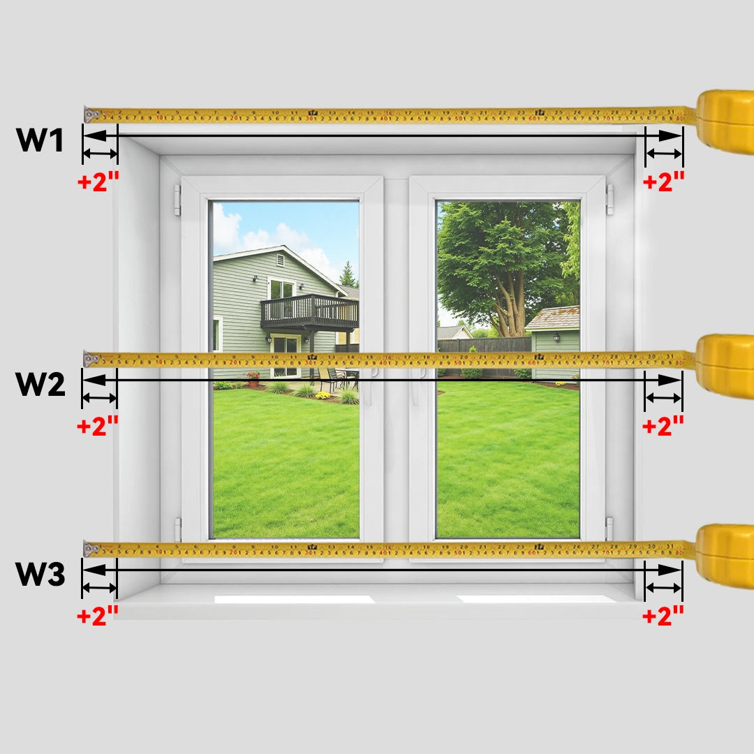 Tip: Measuring in three places accounts for uneven window frames. For a perfect fit, we’ll reduce your custom width by about 1/8" (3mm) during production to ensure easier installation.