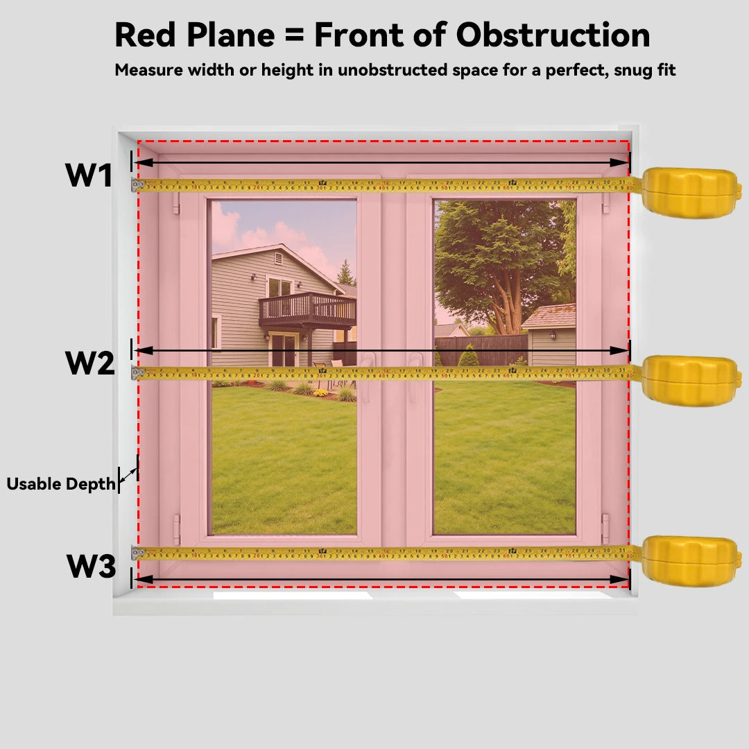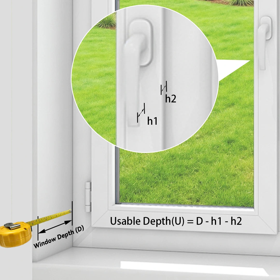 Measure the total protrusion of any obstacles, such as the window sash, handles, or other protruding parts.