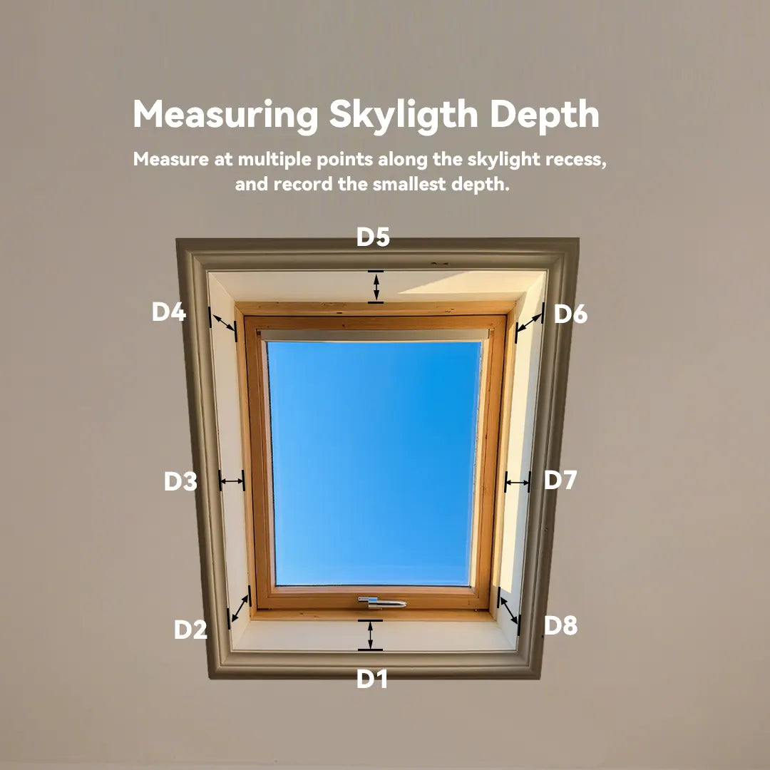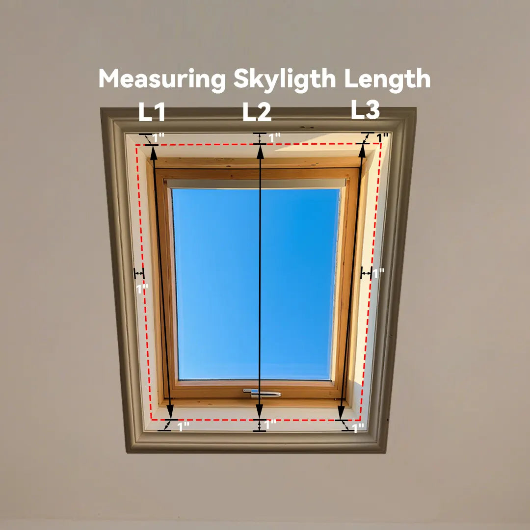 Measure from the top of the skylight recess to the bottom at several points (left, center, right). Record the smallest measurement—this will be your custom length.
